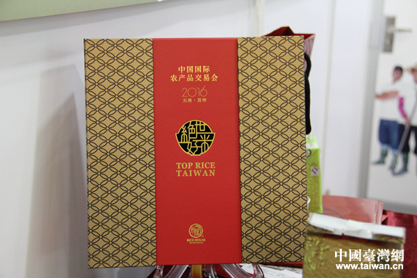 壽米屋企業有限公司專門為本屆農交會定制設計的包裝禮盒裝。(中國臺灣網 劉暢 攝)