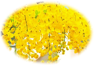 阿勃勒樹中文名的由來,有一段有趣的歌謠:阿婆阿婆去散步/搖搖晃晃走不快/路邊樹下稍歇息/喘口氣來喝口水/風吹落下黃金雨/彷佛置身于仙境/忽見地上黑棍棒/阿婆撿來當柺杖/樂得阿婆笑哈哈/阿婆樂呀阿婆樂/此樹名做阿勃勒……此樹原產南亞,可種植于熱帶和亞熱帶,臺灣是阿勃勒的宜居之地。因此,除了苗栗,臺灣很多地方都選中阿勃勒“吸金”。嘉義市有多條道路旁也種植了阿勃勒,今年嘉義推出了“金黃之戀”旅遊路線,他們以獨有的阿里山小火車為亮點,讓遊客乘坐小火車賞“黃金雨”,車程在森林鐵路車庫園區、北門驛、嘉義火車站之間,遊客下車後有“花夜月下音樂會”,“摸彩送純金花”等活動,將阿勃勒花經營得相當出彩。