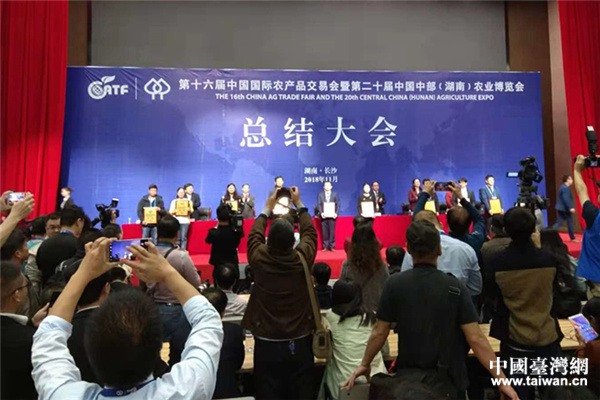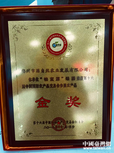 中國臺灣網11月6日北京訊 (記者 郜利敏)第十六屆中國國際農產品交易會于11月1日至5日在長沙舉行。來自海峽兩岸農業合作展區的臺灣農民創業園(簡稱臺創園)4個參展農產品榮獲第十六屆農交會參展農產品金獎。這4個參展產品分別是來自福建龍岩漳平臺創園的永福高山茶、來自廣東梅州梅江臺創園的柏宮源綠茶、山東棲霞臺創園的“BSD”蘋果、浙江臺州仙居臺創園的括蒼山山茶油。