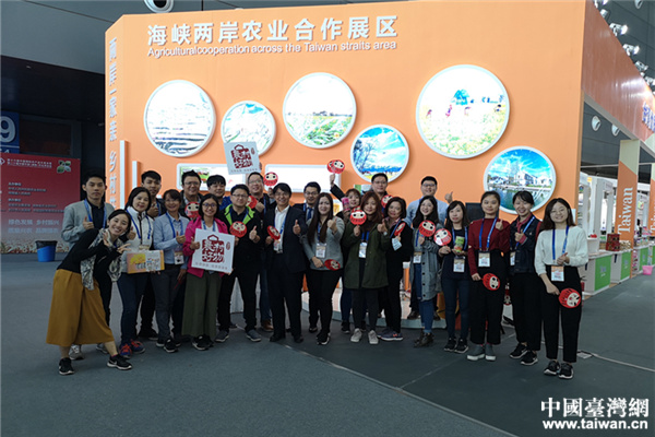 參展的16家島內企業在海峽兩岸農業合作展區合影,點讚農交會平臺。(中國臺灣網 郜利敏 攝)