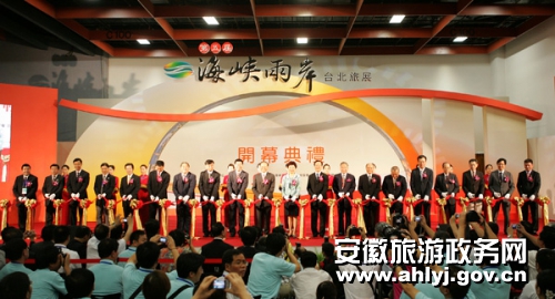 設設The fifth Cross-Strait Tourism Exhibition was unveiled at Taipei World Trade Center Exhibition Hall at 10am on Aug 13. The exhibition lasted four days and, for the first time, combined exhibition and spot sales. The exhibition area for mainland China reached 8,000 square meters, increasing by three times from previous years. Anhui booked 10 booths this year and, in order to highlight the characteristics of Anhui, all the booths were decorated in the style of Hui-style architecture染white walls and green tiles, blended with China red, lending a feeling of grandeur and elegance to the booths.