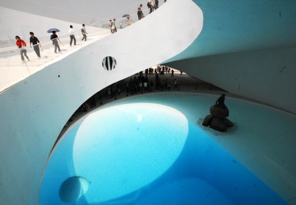 People visit the Denmark Pavilion in 2010 World Expo Site in Shanghai, China, May 2, 2010. Pavilions with unique features have become hot places for visitors after the opening of the Expo Site on Saturday. (Xinhua)