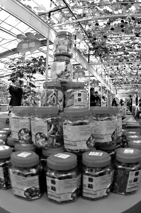 Agro gala: Agricultural products from Taiwan are piled high at the Seventh China (Shouguang) International Vegetable Sci-Tech Fair held yesterday in Shouguang in East China's Shandong Province. This year, for the first time, the fair launched a Taiwan exhibition area to showcase agricultural products from the island. |