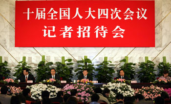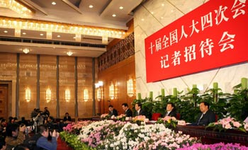 A press conference on the plan to build a new socialist countryside is held by the Fourth Session of the Tenth National People's Congress (NPC) in Beijing March 8, 2006. [Xinhua Photo]