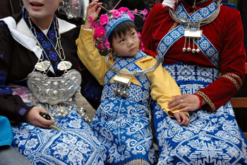 A girl in traditional costume celebrates the March 3rd Festival in Yunyan District of Guiyang, capital of southwest China's Guizhou province, on March 31, 2006. [Xinhua Photo]