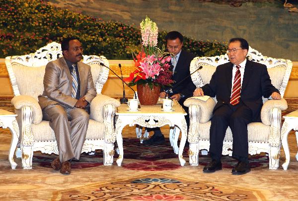 Li Changchun (R), a member of the Standing Committee of the Political Bureau of the Communist Party of China (CPC) Central Committee, meets with Ato Redwan Hussien, the Ethiopian People's Revolutionary Democratic Front (EPRDF) Secretariat Head and a member of the EPRDF executive committee, in Beijing, capital of China, Feb 23, 2011. [Xinhua]