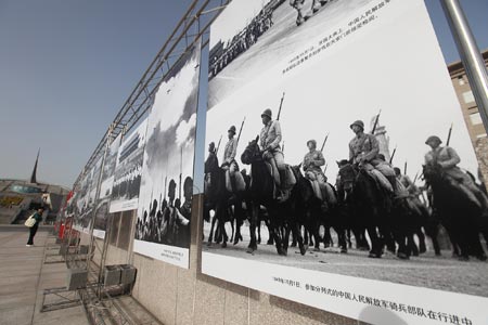 A woman visits a photo exhibition showcasing the classical moments during the 60 years after the founding of the People's Republic of China, in Beijing, China, on Sept. 20, 2009. The photo exhibition displays over 220 photos from Xinhua News Agency and China Pictorial presenting the achievements New China has made during the past six decades. (Xinhua/Xing Guangli)