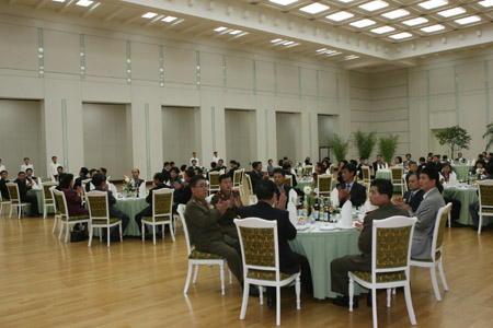 Guests attend a grand reception to celebrate the 60th founding anniversary of the People's Republic of China, in Pyongyang, capital of the Democratic People's Republic of Korea (DPRK), Sept. 28, 2009. (Xinhua/Zhang Bingyang)