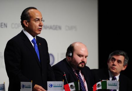 COPENHAGEN, Dec. 17 (Xinhua) -- Mexican President Filipe Calderon received the Global Legislators Organization (GLOBE) Award for his leadership on the environment at the Copenhagen climate conference on Thursday.