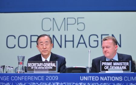 UN Secretary-General Ban Ki-moon addresses the opening ceremony of the high-level segment of UN Climate Change Conference in Copenhagen, capital of Denmark, Dec.15, 2009. (Xinhua/Wu Wei)