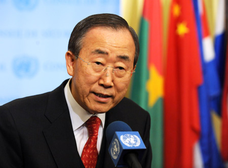 UN Secretary-general Ban Ki-moon speaks at the UN Headquarters in New York, the United States, on Dec. 8, 2009. Ban Ki-moon on Tuesday voiced optimism for a successful international conference in Copenhagen, saying that the gathering can be a "turning point" in the fight against climate change. (Xinhua/Shen Hong)
