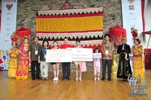 The girl won two round-trip tickets for Shanghai Jakarta -- Batam -- Bintan Island, Indonesia, three-day-two-night accommodation including meals at a five-star hotel in Jakarta and free meals for two at Enak! Restaurant inside the pavilion. The pavilionˇs director Widharma Raya and Mari Pangestu, the Minister of Trade of Indonesia, presented the gifts to her.