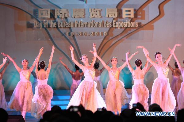 Students from the Shanghai Theater Academy and the Shanghai opera school perform at a ceremony marking the Day of the BIE at the 2010 World Expo in Shanghai, east China, Oct. 30, 2010. (Xinhua/Pei Xin)