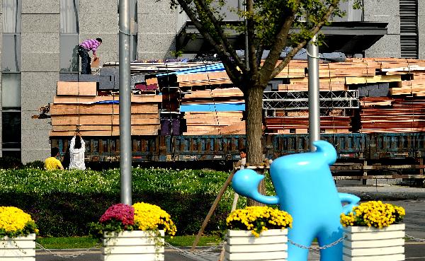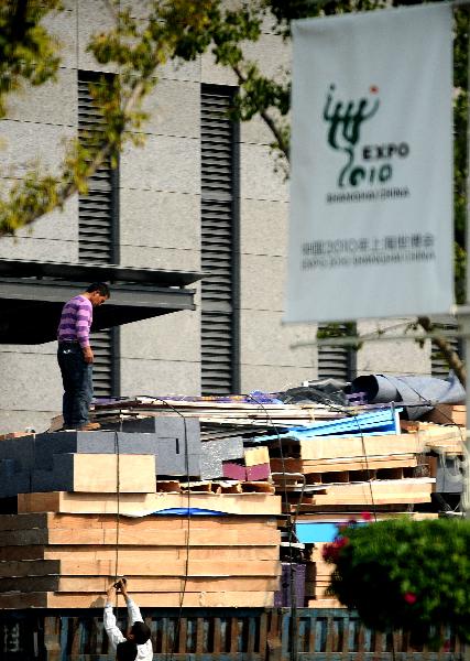 Workers load removed materials onto a truck at the World Expo Park in Shanghai, east China, Nov. 1, 2010. The 184-day Shanghai World Expo concluded Sunday. (Xinhua/Wu Xiaoling)