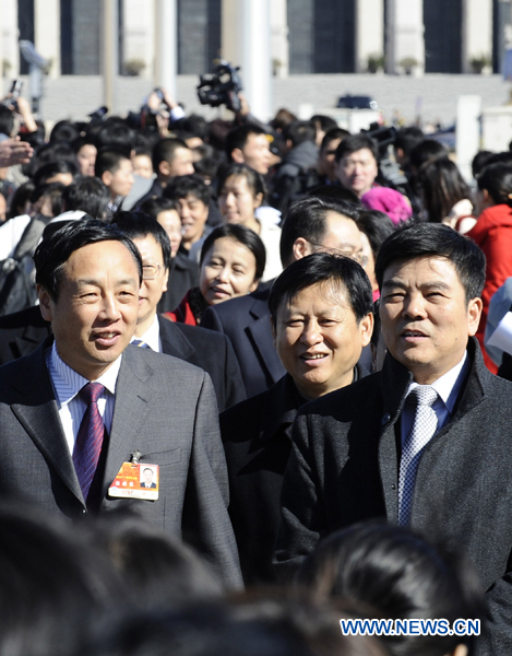 Members of the 11th National Committee of the Chinese People's Political Consultative Conference (CPPCC) walk to the Great Hall of the People in Beijing, capital of China, March 3, 2011. The CPPCC National Committee started its annual session Thursday afternoon.(Xinhua/Ren Yong)