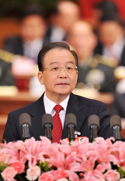 Chinese Premier Wen Jiabao delivers a government work report during the opening meeting of the Fourth Session of the 11th National People's Congress (NPC) at the Great Hall of the People in Beijing, capital of China, March 5, 2011. (Xinhua/Huang Jingwen)