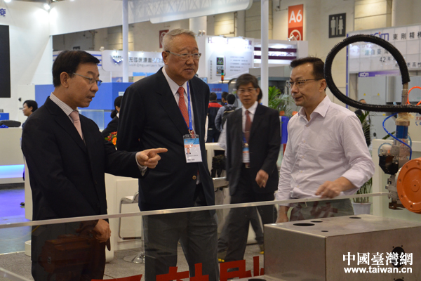辦事處李榮民主任(左1)陪同臺灣電電公會郭臺強理事長(左2)參觀廈門工博會。(中國臺灣網發 機電商會臺北辦事處供圖)