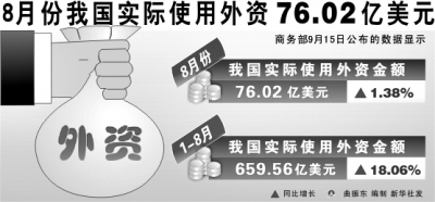 暙禰z場15日公布Y掁O霰譓\鋇投戈(FDI)計沮陪示8月中瓣龜悔ㄏ用臚僬解76.02貨雂鬗鬄W1.38%裷7月a鬗鬄W29.2%誘瑆W硉簅媯鉭价ㄓ尷R\|8月FDI增硉媯戩v目玡h瞴投戈Μ罽艉勻元g蕾擋構秸俱Y砰瞷鄐ㄨG埃案礛D^祽銣諵鄏O挂無閩鄐勻中棉vh瞴程ㄣΤ掑窌Y投戈目YH之