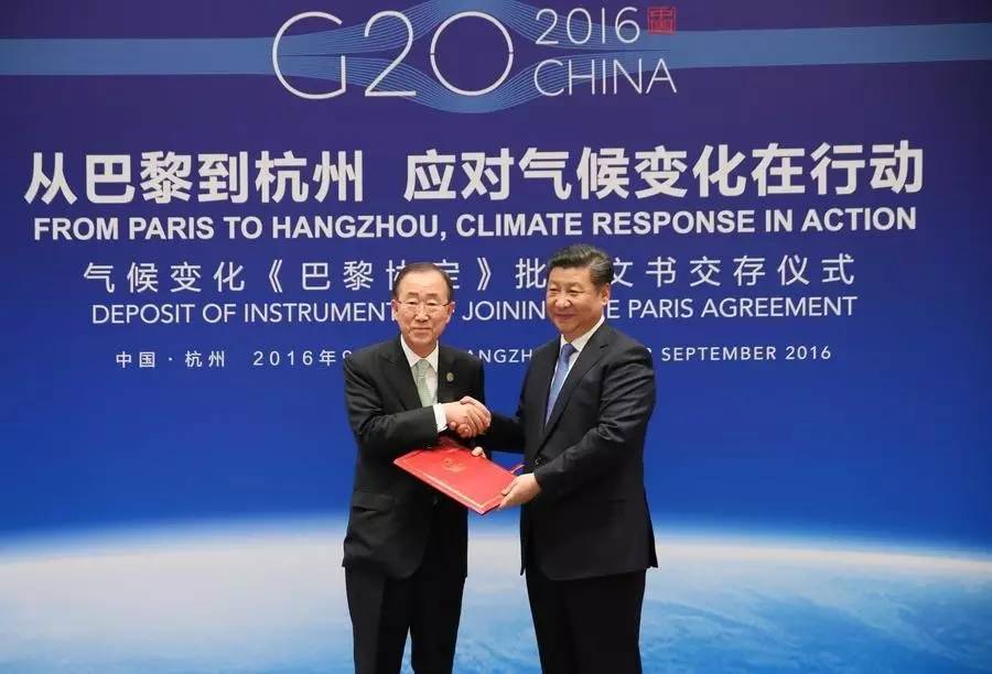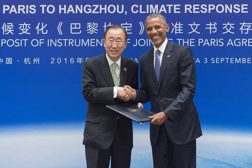 ݐPresident Obama and Chinese President Xi Jinping formally joined the Paris climate accord on Saturday, handing over signed documents to United Nations Secretary General Ban Ki-Moon in Hangzhou, China and giving a major push toward bringing the emissions-cutting plan into force before the end of the year.