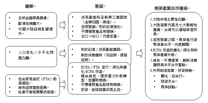 圖1 全球經貿趨勢變化、意涵及其對兩岸產業合作的連結示意圖