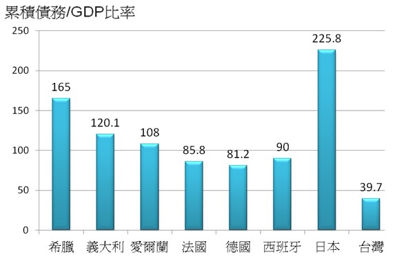 1.政府累積債務佔GDP比重近四成(見圖4),仍在控制之中,但連年財務赤字及租稅負擔率的偏低(見表2、表3),是一大隱憂