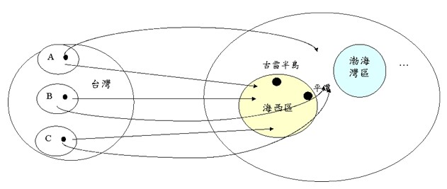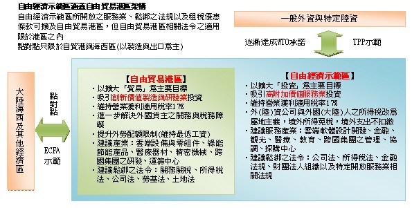 1.臺灣的自由經濟示范區可以一開始對應于海西區或渤海灣區等,但未來可擴大、延伸于大陸各區