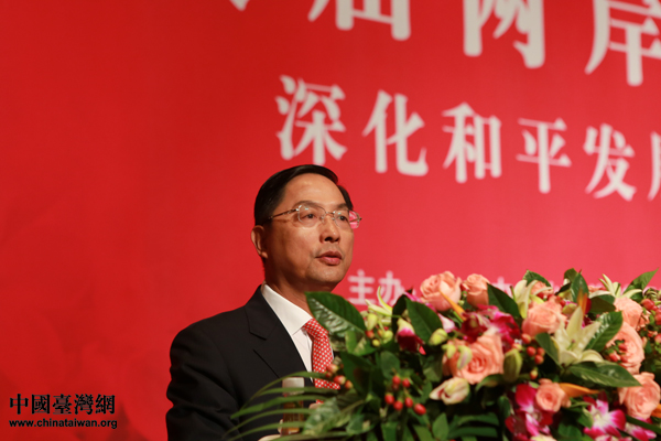 中共中央臺辦特邀嘉賓蔣耀平在第八屆兩岸經貿文化論壇主題演講階段發表了題為四年來兩岸經濟關係的回顧及對未來的展望的演講。(中國臺灣網 于斯文 攝)