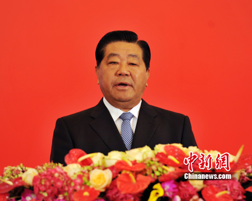 5月7日上午,第七屆兩岸經貿文化論壇在成都開幕,中共中央政治局常委、全國政協主席賈慶林出席開幕式並致辭。 中新網發 劉忠俊 攝