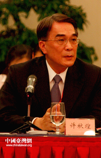 中國國民黨國政研究基金會特邀嘉賓許秋煌表示,大陸擁有龐大的華語市場,對于娛樂休閒的需求及消費隨之增加。臺灣在娛樂及流行文化產業上具有敏銳的嗅覺和豐富的產制經驗,兩岸在產品和市場上呈現互補交流。(中國臺灣網 高斯斯 攝)