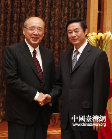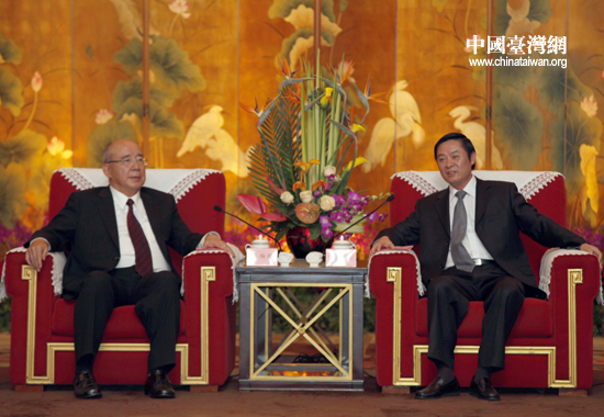 5月8日下午,中共四川省委書記劉奇葆在成都會見中國國民黨榮譽主席吳伯雄和參加第七屆兩岸經貿文化論壇的部分臺灣代表。 (中國臺灣網 田雲鵬 攝)