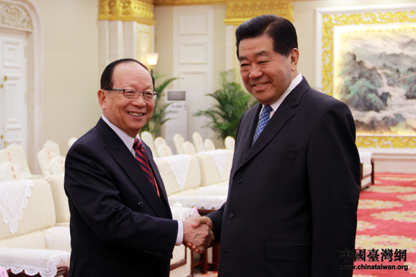 中共中央政治局常委、全國政協主席賈慶林27日下午在哈爾濱會見了中國國民黨榮譽主席吳伯雄及應邀參加第八屆兩岸經貿文化論壇的兩岸各界人士。(中國臺灣網 于斯文 攝)