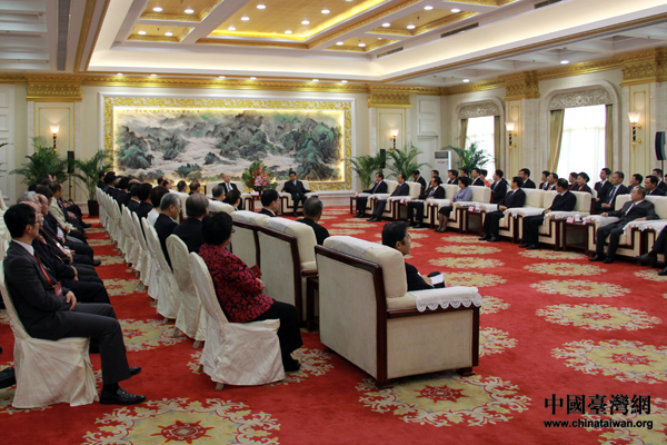27日下午,中共中央政治局常委、全國政協主席賈慶林在哈爾濱會見了中國國民黨榮譽主席吳伯雄及應邀參加第八屆兩岸經貿文化論壇的兩岸各界人士。(中國臺灣網 于斯文 攝)