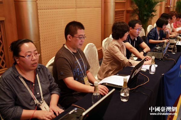中國臺灣網記者在第八屆兩岸經貿文化論壇開幕式現場進行文字直播。(中國臺灣網 于斯文 攝)