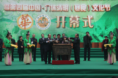 研討會開幕式舉行匯土儀式,來自兩岸四地的嘉賓代表分別手持取自北京、香港、澳門、臺灣的沃土,匯入一只特制的清明鼎中。