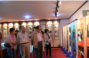 與會學者在重慶抗戰遺址博物館認真觀看展板