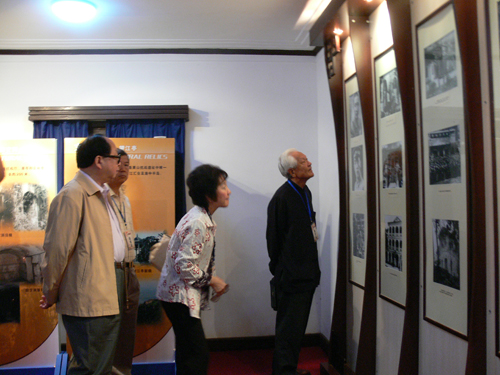 與會臺灣嘉賓在重慶抗戰遺址博物館仔細觀看展品