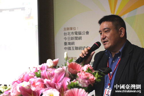 雄獅旅遊網網絡營銷部總監俞國興在分論壇“創新營銷與互動教學”現場。(中國臺灣網 董子譽 攝)