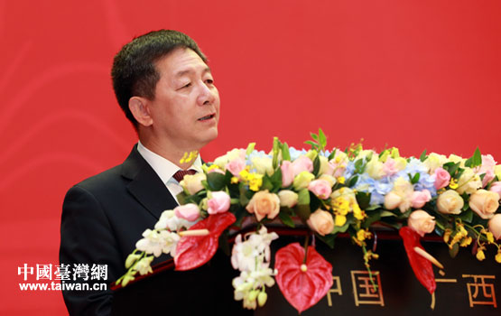 第九屆兩岸經貿文化論壇26日下午進行主題演講,中共中央臺辦副主任葉克冬、中國國民黨副秘書長林德瑞共同主持了主題演講。圖為葉克冬主持主題演講。(中國臺灣網 于斯文 攝)