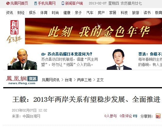 〔鳳凰網〕王毅:2013年兩岸關係有望穩步發展、全面推進