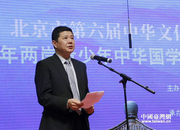 北京市臺辦主任汪明浩表示,中華文化淵源流長,厚實堅韌,兩岸人民同屬中華民族。希望兩岸青少年能夠手牽手,心貼心,讓中華傳統文化在兩岸文化教育交流中根深葉茂,傳承發揚。