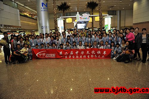9月26日第二屆中華文化快車兩岸青少年文化交流活動正式啟動。昨(25日)天下午,來自山東、北京兩地的179名師生乘飛機抵達心儀已久的臺灣,參加將于27日在新竹舉行的兩岸師生聯合祭孔儀式。大陸師生此行還將參訪臺灣忠信學校祭孔尊師開學典禮,並與臺灣師生就兩岸文化素質教育進行交流。