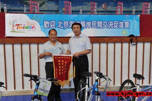 北京市臺辦副主任曹居京向林建榮先生贈送錦旗