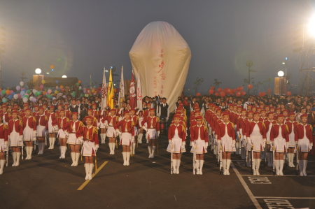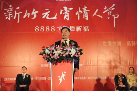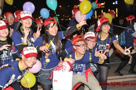 在上海世博會結束後落戶臺灣新竹市的世博臺灣館廣場上,華燈高照,夜空炫彩。京臺兩地師生與新竹市民一起,以“世博臺灣,情歸新竹”為主題揭開新竹元宵走街十二周年活動的序幕。京臺同學分別進行文藝表演並共同施放8888盞天燈,為兩岸祈福。踩街隊伍沿忠孝路、民族路等地歡唱前行,來自北京的同學們統一著裝、步調輕盈,盡情揮舞著自己制作的“樂器”,節拍整齊地用地道的閩南語喊出“兩岸同心、慶元宵”等口號,與沿街的新竹市民相互賀歲,祝福新春。
