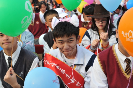 臺灣忠信學校的學生與北京市第八中學的學生在活動現場(邢慶 攝)