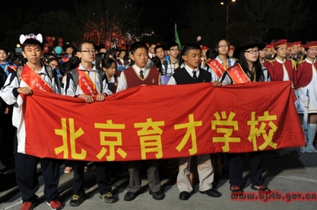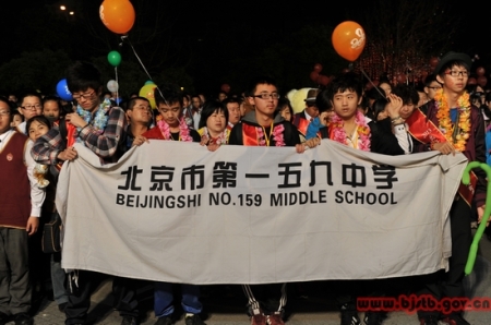 來自北京市第一五九中學的學生參加元宵走街(邢慶 攝)