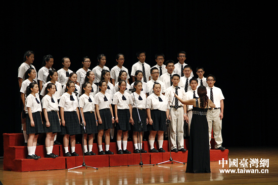 新竹忠信學校天聲合唱團同學們在晚會上演唱了《月滿西樓》、《想起你想起我》等歌曲。(中國臺灣網 普燕 攝)