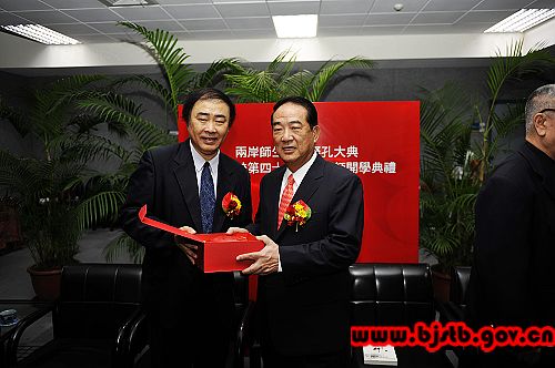 2008年9月28日,京魯臺首屆中華文化快車暨臺灣首屆兩岸師生聯合祭孔大典于新竹舉行。臺灣忠信學校自 1970創校伊始,連續三十九年的祭孔及開學尊師儀式首次公開呈現在世人面前。大典中,兩岸學子攜手,緬懷中華先哲,意義深遠。上午九點二十八分,大典伊始,“薔蜜”即至,室外,天地瞬間狂風驟雨,室內,兩岸青年心手相連;風雨中嘉賓雲聚,宋楚瑜先生親臨主禮,滿室溫馨,詩雲:風雨如晦,雞鳴不已,既見君子,雲胡不喜。