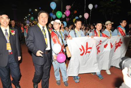 北京市臺辦副主任高振生、交流處副處長尹振東和北京學生一起參加走街活動(邢慶 攝)