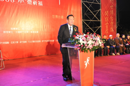 許明財在致辭中介紹了新竹忠信學校及元宵節踩街活動的歷史,對前來參加活動的北京貴賓表示熱烈歡迎,希望能夠進一步加強兩岸之間的優勢領域互補,推進兩岸關係發展。