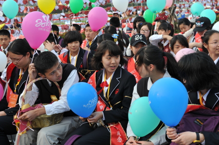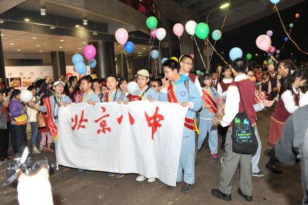 臺灣忠信學校的學生與北京市第八中學的學生在活動現場(邢慶 攝)